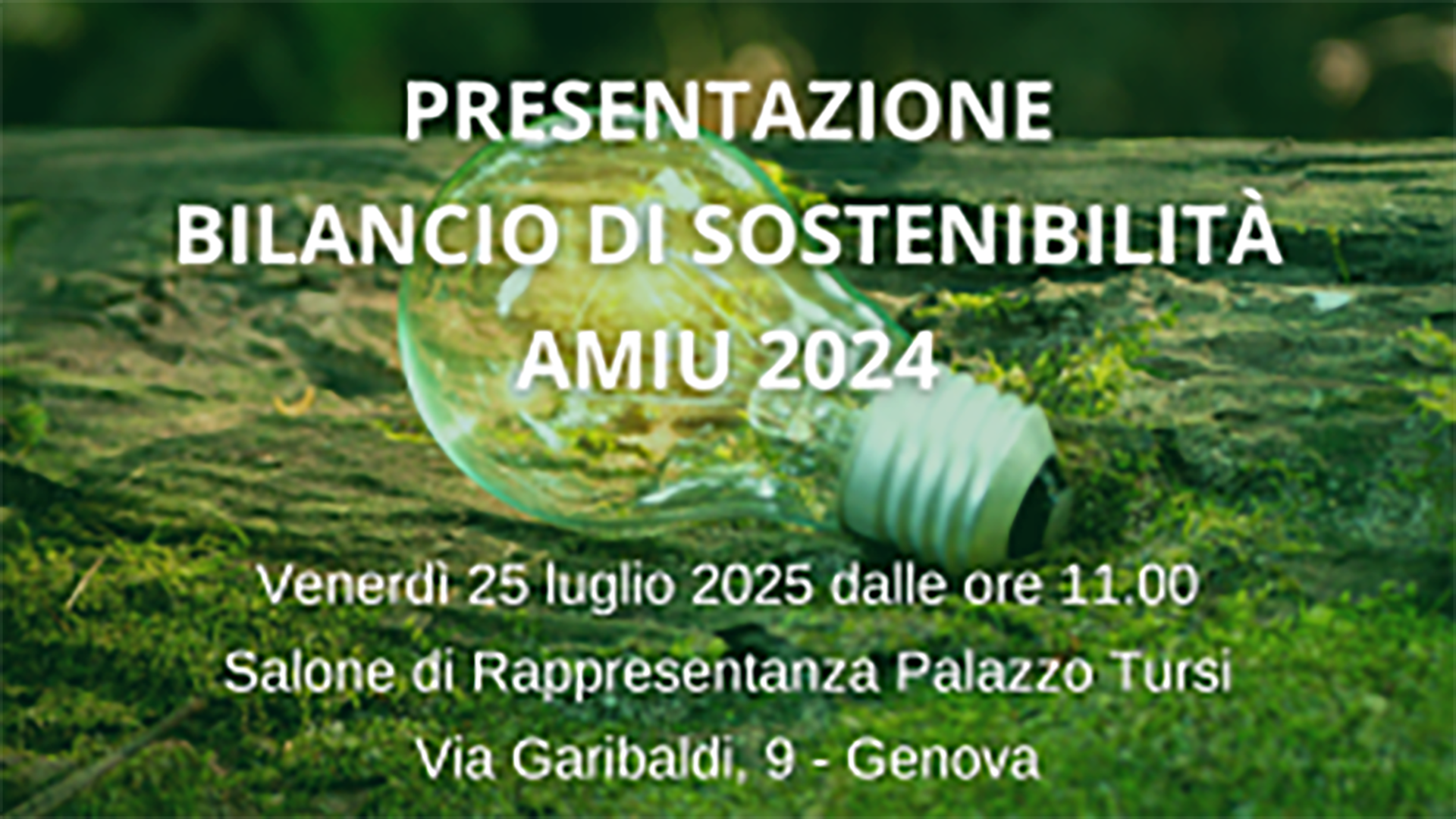 Si terrà il prossimo venerdì 25 luglio presso il Salone di Rappresentanza di Palazzo Tursi la presentazione del Bilancio di Sostenibilità AMIU relativa all’anno 2024.