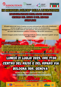 L’iniziativa è promossa da Assoutenti Liguria ODV nell’ambito del Patto di Collaborazione con il Comune di Genova, CEAS, Municipio II Centro Ovest e AMIU Genova.