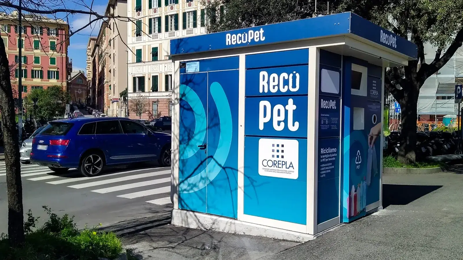 È infatti la prima città in Italia a ospitare i nuovi ecocompattatori “Recopet”, una tecnologia all’avanguardia alimentata a energia solare, ideata per incentivare la raccolta differenziata delle bottiglie in PET per liquidi alimentari. Il progetto è promosso da Corepla in collaborazione con AMIU Genova e Comune di Genova.
