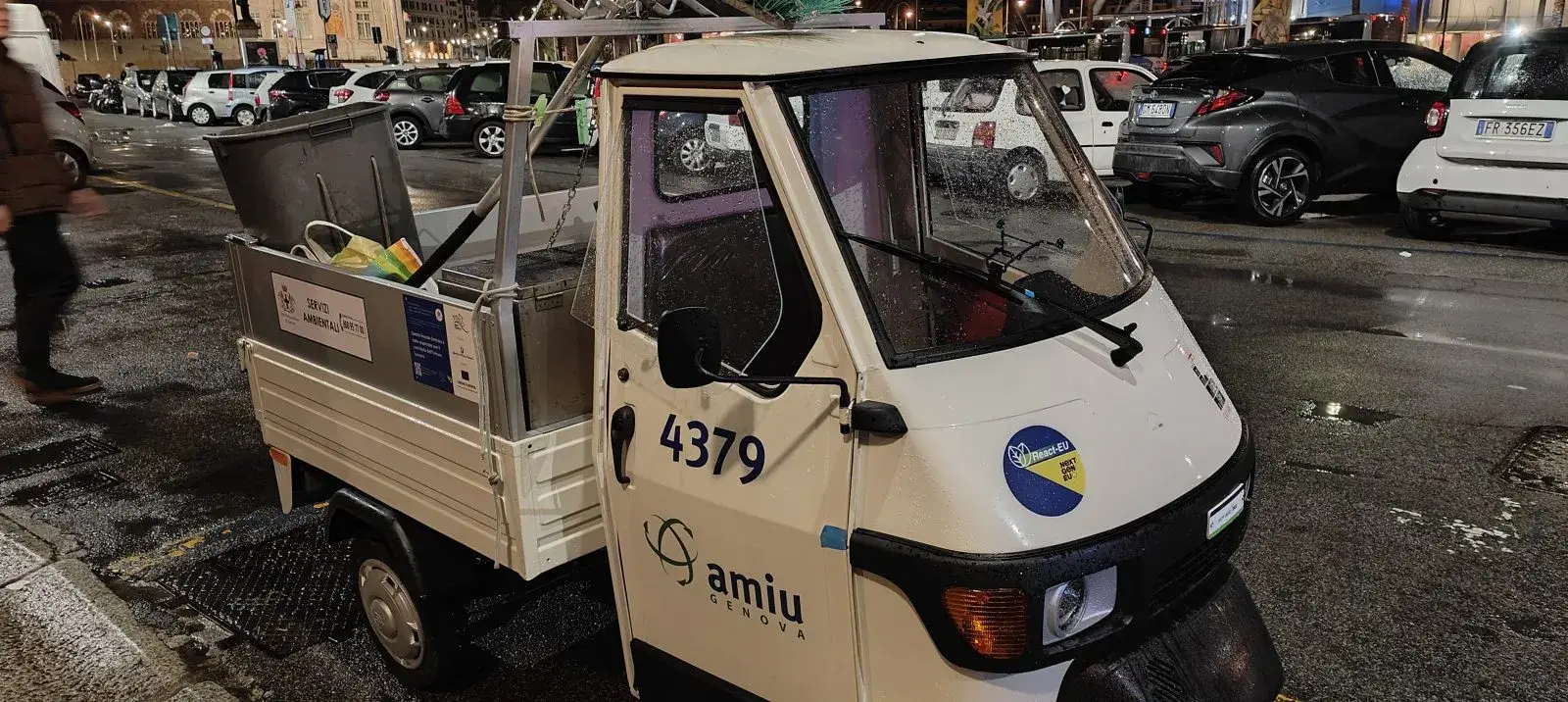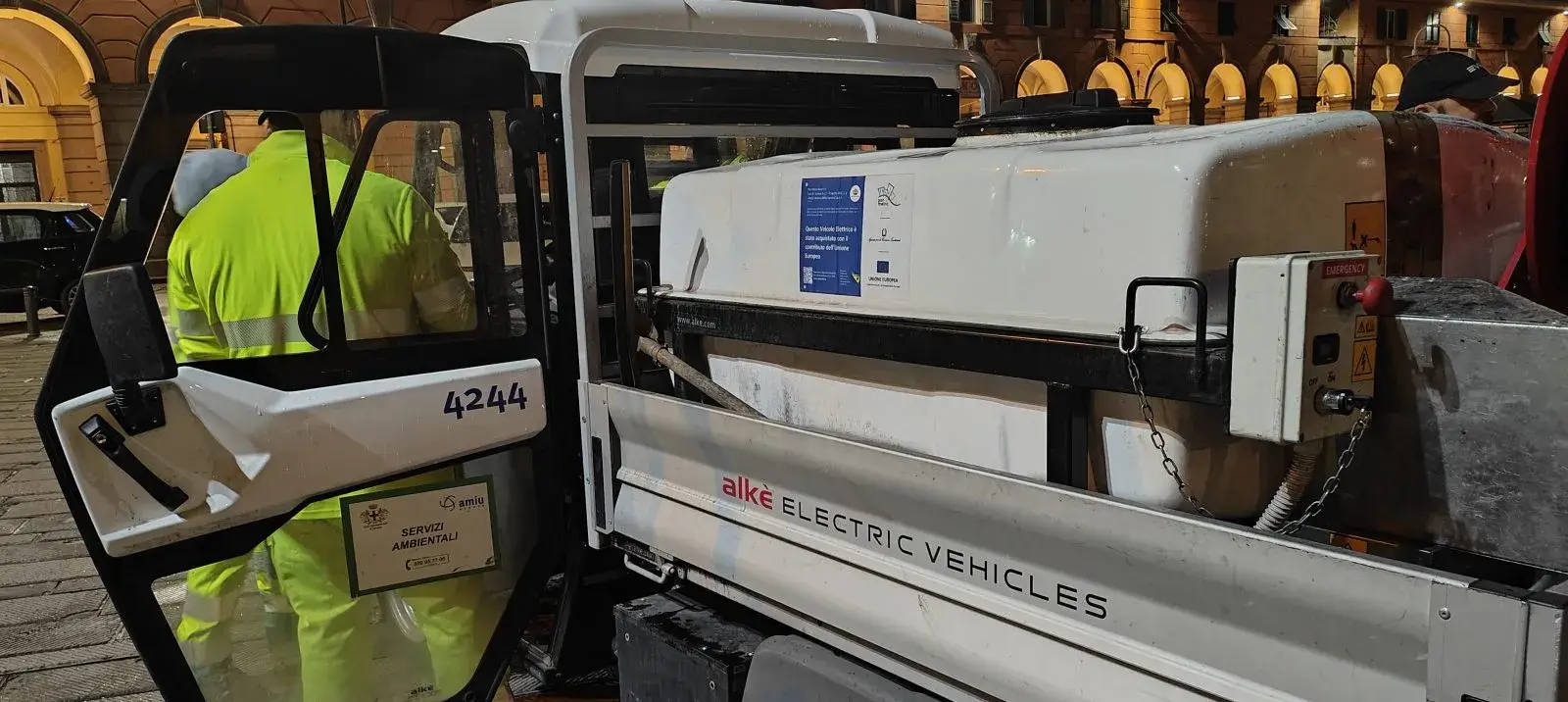 I ciclocarri, anch’essi elettrici, sono utilizzati dagli operatori per il trasporto del materiale necessario ad effettuare i lavaggi notturni (manichette, cartellonistica, attrezzatura varia) e, di giorno, per il trasporto di materiale utile alle attività di pulizia manuale manuale (scope, palette, sacchetti), l’acquisizione dei quattro ruote rientrano nei finanziamenti del progetto REACT EU – PON Metro Città Metropolitane 2014-2020 – Azione 6.1.4 Qualità dell’ambiente e adattamento ai cambiamenti climatici – Scheda GE6.1.2.g.