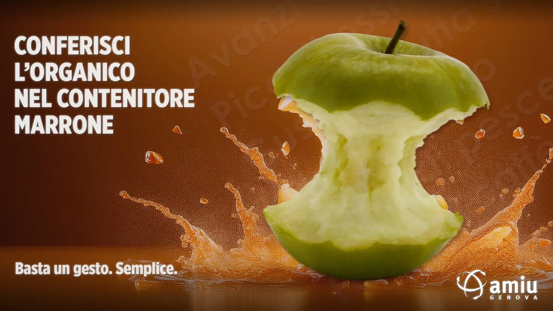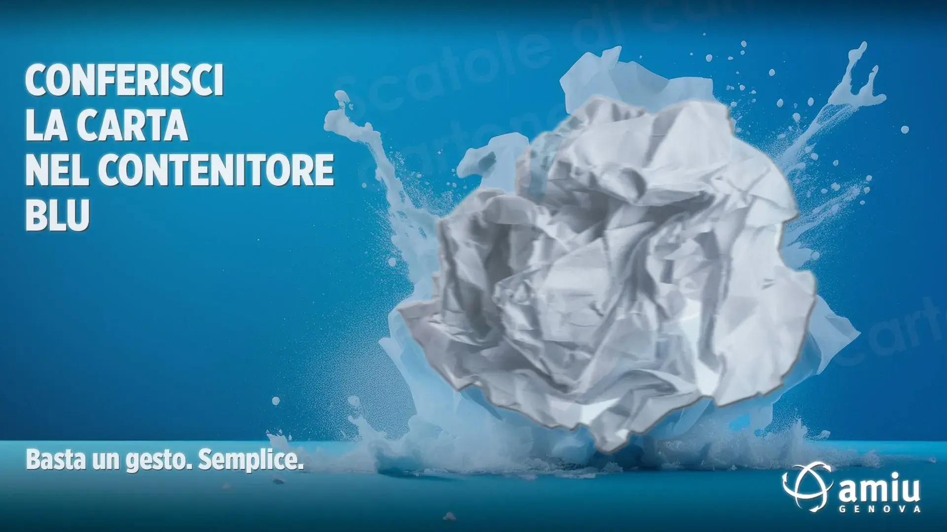 Abbiamo scelto un linguaggio visivo potente ed immediato: cinque immagini, una per ogni frazione di rifiuto – organico, vetro, plastica, metalli e carta – che parlano con il colore e con l’energia e il dinamismo delle scene.