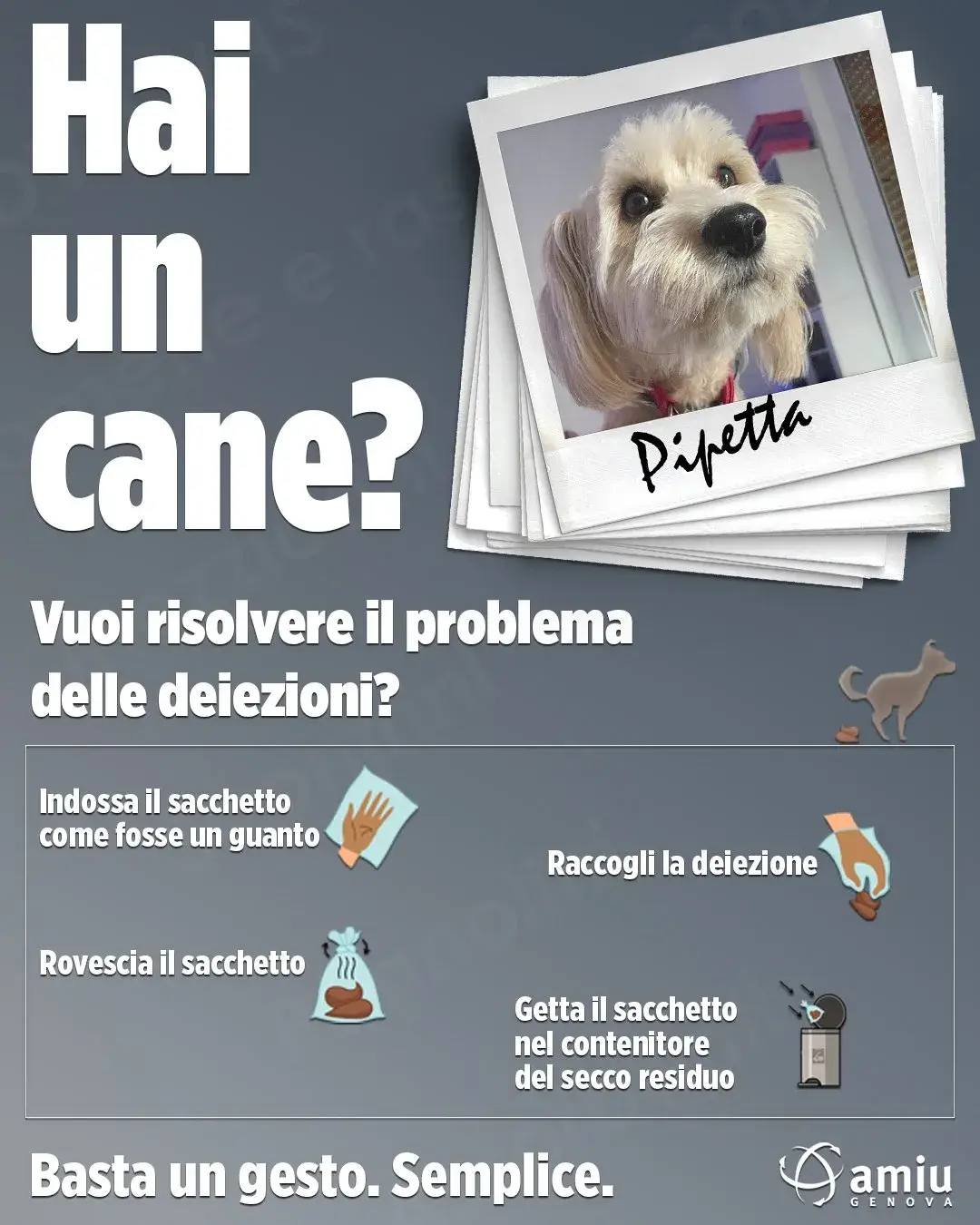 Protagonisti? Pipetta, Flavio e Muffin, tre cani che parlano direttamente a noi umani per insegnarci come mantenere il decoro dei luoghi che frequentiamo, raccogliendo correttamente le loro deiezioni.
